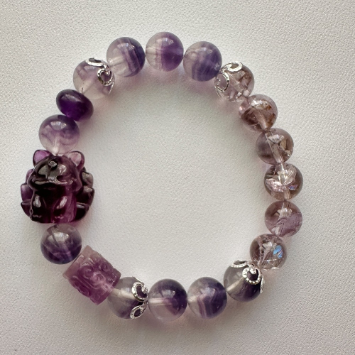 紫瑩石和紫幽靈都是具有智慧能量的寶石,能夠幫助您提升智慧和洞察力。穿戴這款手鍊,您將感受到智慧的力量注入您的生活中,幫助您做出明智的決定並達成目標。