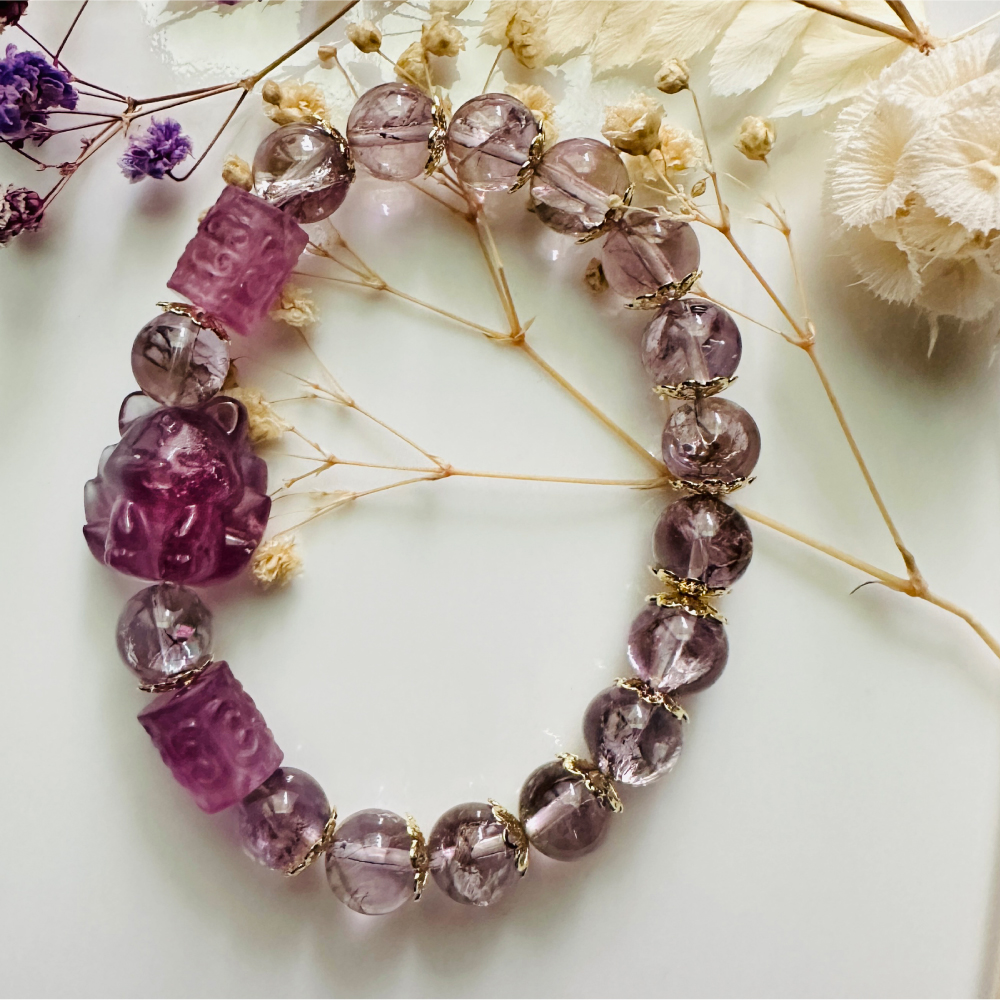 綻放魅力!九尾狐紫瑩石紫水晶手鍊,為您帶來平靜與智慧