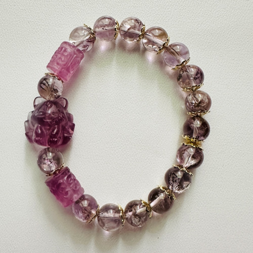 九尾狐象徵著智慧和靈性,能夠幫助您提升思考能力和洞察力。紫瑩石是一種能夠激發創造力和智慧的寶石,能夠幫助您解決問題和做出明智的決定。紫水晶則被視為智慧之石,能夠增強您的直覺和洞察力。這款手鍊結合了這三種元素,為您帶來智慧的力量和洞察的眼光。