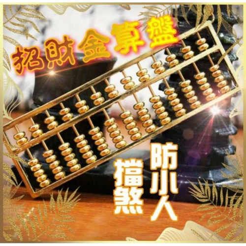 【開光】招財算盤,金算盤,風水算盤,銅算盤,開運,擋煞,招財,防小人F01 名稱:招財風水金算盤 『金算盤說明』 風水算盤代表財富,生旺功名富貴。俗話說“財庫滿,放算盤”。 算盤形狀方正意為行事作風正直、儒雅嚴謹,有王者之風,是財富地位的象徵。 算珠圓滑靈動意為人的性格慎重、心細如發,更含著運籌帷幄,掌控天地之意,促進勤勞致富而令財富突飛猛增,並可震懾陰邪,生旺功名富貴。 『金算盤使用方式』 1.守財:風水算盤放置於常用抽屜裡、辦公桌上鎮宅,或掛在鑰匙環上、於財位等吉位,能起到財權雙收之作用,象徵一路發、財運亨通、富裕富饒。 2.擋煞:可以掛在門上,窗上,或者書架上,用於招旺財,化煞解小人。門外對著電線桿,形成六煞水,亦可掛於窗前擋煞,否則易對健康及事業造成負面影響。 3.招財:店鋪收銀台、保險櫃裡面放於算盤,寓意財源滾滾而來,數字無窮無盡、周而復始。文職會計師可隨身攜帶或放於工作桌,對財運有很大幫助。 材質:銅合金屬 尺寸重量: 8格:約 6 * 3.7 cm,20 g 9格:約 9 * 4 cm,60 g 13格:約 12.5 * 4 cm,90 g