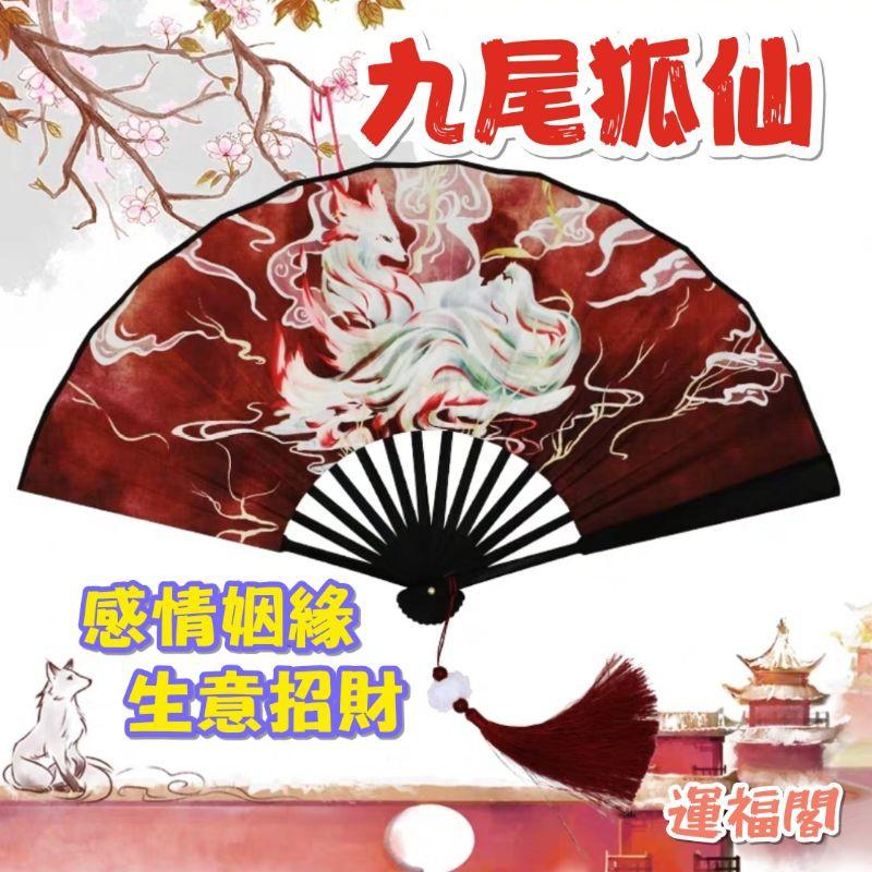 **『運福閣』【開光】蓮花流蘇九尾狐仙折扇,九尾狐狸,狐仙娘娘,手工流穗絹布扇子,斬小三,促姻緣,招財