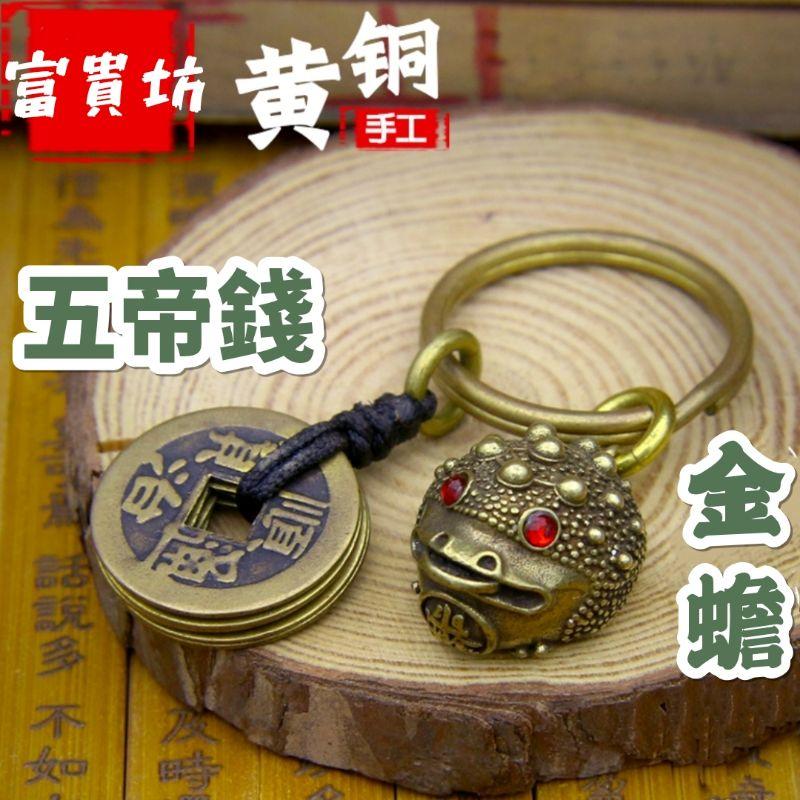 **『富貴坊』【開光】純銅五帝錢金蟾蜍鑰匙圈,金蟾,蟾蜍,三腳蟾蜍,五帝錢,招財蟾蜍,黃銅蟾蜍