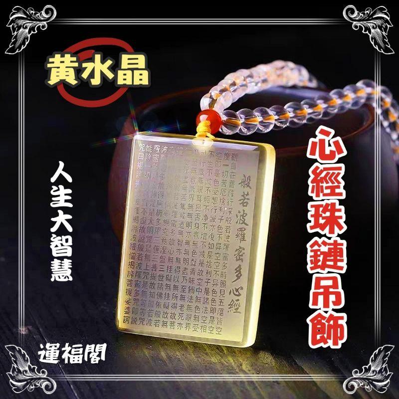 **『運福閣』【開光】黃水晶般若心經佛教經文吊飾,般若波羅蜜多心經,觀音菩薩,本命年佛經項鏈