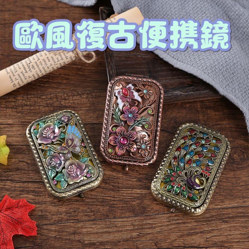 **歐式復古雙面折疊鏡,便携鏡,化妝鏡,美容鏡,携帶式小鏡子,兩面鏡
