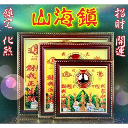 【開光】山海鎮,銅板山海鎮,八卦凸鏡,鎮宅,避煞,旺財,居家平安,事事如意F01 名稱:八卦凸鏡山海鎮 【山海鎮化煞功效】 一般外型煞、天斬煞、官帽煞、路衝、反弓煞、案劫煞、厝角厝刀、路衝、巷衝、破碎煞、凹風煞。 一般陽宅、商店、公司所犯煞、屋角煞、壁刀煞、廟角煞、路衝、巷衝、天斬煞、電線桿、高樓尖峰、刀煞、反光煞、割腳水煞。 【山海鎮化煞方式】 1、化解天斬煞:兩棟大樓間的狹窄空隙,將山海鎮安置在窗口或門前(面對天斬煞的方向),可收化解之效。 化解尖角煞:現代大樓造型多銳角,經常形成尖角對到門口,面對煞氣方掛上山海鎮,可化解煞氣。 2、化反弓煞:明堂見水流或馬路呈反弓煞,主子孫不孝,面對反弓煞處,掛山海鎮化解。 3、化凹風煞:住宅外有凹風煞,主血光,神經衰弱及睡眠質量不佳,面對煞氣處,掛山海鎮化解。 4、化巷衝:屋後有巷衝-主犯小人和坐立難安,屋前巷-主血光,面對煞氣處,掛山海鎮化解。 5、巷衝及璧刀煞:主血光意外之災,面對煞氣切進處掛山海鎮化解。 6、明堂見高樓、高山阻氣時,或面對別家之後門背面,或前屋高於己屋時,都可使用山海鎮化解。 7、明堂見大樹,陰氣甚重之時使用。 8、小人探頭煞+電燈柱煞:其陽宅周邊有小人探頭之煞氣,可掛山海鎮化解。 9、公寓大樓內的住宅,常犯住宅大門對到上下樓梯,在大門上方安置山海鎮(約斜45度角)面對樓梯,可化解煞氣。 10、電線桿+變電器:有血光意外變電器會讓人做出錯誤判斷和決定,可以安置山海鎮正對煞氣安置即可化解。 11、若鏡面對到到別人,建議山海鎮搭配放一對銅麒麟,因為銅麒麟是吉祥之動物,且可化解煞氣,只要將麒麟正對煞氣之處即可化解煞氣。 尺寸重量: 小號(五寸) : 15*15*1cm , 0.15kg 中號(六寸) : 19*19*1.5cm , 0.26kg 大號(七寸) : 24.5*21.5*1.5cm , 0.39kg 加大號(八寸) : 28.3*24.4cm*2cm , 0.57kg 特大號(十寸) : 31.2*27*2cm , 0.71kg 超大號(十二寸) : 37*32.5*2cm , 1.09kg