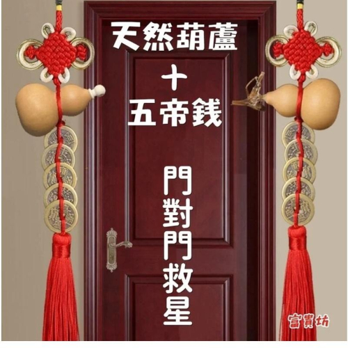 『富貴坊』【開光】一對兩串天然葫蘆五帝錢,葫蘆,五帝錢,門對門,門對床,樓梯沖煞,化煞,招財,平安K01 名稱:天然葫蘆五帝錢(共一對兩串) 【贈品】 開光證書。 【意義】 1、五帝錢是順治,康熙,雍正,乾隆,嘉慶,這五個皇帝年號的銅錢,現在民間稱之為五帝錢。五帝錢寓意:家庭順治,生活康熙,人品雍正,生意乾隆,事業嘉慶。 2、葫蘆自古以來就是「福祿吉祥」、「健康長壽」的象徵,也是保宅護家的良品。現在葫蘆已成為觀賞、收藏、化煞的上好佳品,是中華吉祥文化的代表象徵。 3、葫蘆還是一件神秘之物,可以降妖除怪,阻擋煞氣,特別是桃木葫蘆化煞效果好。 在風水上,令人運程阻滯並帶來疾病的星耀,都是五行屬於土,而葫蘆即擁有化解土煞的功效。 4、比如屋內門對門,穿堂煞,可掛八卦葫蘆化解。經常開車的朋友,可掛保平安。暗溝煞,牆角煞,路沖煞都可以用來化解。住宅門對樓梯,住宅門對電梯門,可以化解,在住宅門框上掛一串即可。 【安置】 1、門口、窗前、樑沿、車內,各種沖煞皆可安置懸掛。 2、比如屋內門對門,穿堂煞,可化解。經常開車的朋友,可掛保平安。暗溝煞,牆角煞,路沖煞都可以用來化解。住宅門對樓梯,住宅門對電梯門,可以化解,在住宅門框旁掛即可。 【材質】 天然葫蘆。 【尺寸】 葫蘆約長5~8cm。 總長約30cm。 【容量】 共2串。