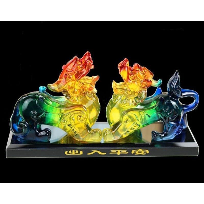 『富貴坊』【已開光】特大號七彩琉璃貔貅一對,附水晶底座+檔位珠,辦公室、客廳家居、車內擺件,黃玉貔貅,咬錢貔貅,旺財,守財,化煞,避邪,鎮宅,改運,守護主人,增感情,旺姻緣,家庭和睦 【特大號尺寸】 七彩琉璃貔貅一對,附水晶底座,每隻貔貅約長21cm 【贈品】 開光證書, 貔貅檔位珠, 精緻底座 【如何擺放】 1 可擺放在汽車車頭、 儀表台等位置 2 可擺放在客廳玄關、電視櫃或是窗台的位置 3 可擺放在書房書桌、電腦桌或是辦公室等位置 4 可擺放在臥室 【貔貅說明】 1. 貔貅本就是天宮中的神獸,威嚴,鎮守四方。又因貔貅護主心切,將已開光的貔貅安放在家中,可令家運轉好,好運加強,趕走邪氣,有鎮宅之功效,成為家中的守護神,保合家平安 2. 貔貅有趨財、旺財、招財、聚財的作用,尤對偏行、收入浮動者有奇效,例如房地產、銀行、銷售、經商、外匯、股票等等 3. 貔貅有化解五黃大煞的作用,貔貅乃是風水寶物、轉禍為祥之神獸。最擅化解五黃煞、天折煞、穿心煞、鐮刀煞、屋星煞、刀煞、白虎煞、陰氣煞(如墳場、廟宇、鬧鬼的地方)、二黑病符星 【貔貅作用】 1. 招財之用。貔貅本為遠古神獸,主食金銀財寶,喜歡金錢的味道,一身寶氣。又因其只有嘴無肛門,很典型的財寶只進不出,乃為招財進寶的精品 2. 辟邪之功。早在幾百萬年前,人們喜歡把一角的貔貅稱為「無祿」,二角稱為「辟邪」,且因其長相兇猛,能讓妖魔鬼怪對其敬而遠之,故若將已開光的貔貅置放於某地,有趕走邪氣,起到辟邪之功效 3. 增感情、旺姻緣。貔貅自古都有旺姻緣、增進感情、旺桃花之作用,人們常常喜歡供請貔貅,以此來促進家庭和睦,夫妻順暢,尤其是青年男女頗為喜愛 4. 助仕之運。關於貔貅的傳說比較多,大部分與戰爭有關,而貔貅也被稱為常勝將軍。傳其曾經幫助過皇帝打敗蚩尤,從此聲名大噪,人們將其圖形繪在軍旗上,藉此祈禱軍隊像貔貅一樣戰無不勝 5. 祛病邪護身,鎮宅消煞,為主人聚財掌權之用