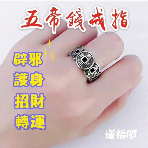 『運福閣』【開光】仿古五帝錢戒指,五帝錢銀戒,五帝錢,辟邪擋煞古錢,招財進寶錢幣K04