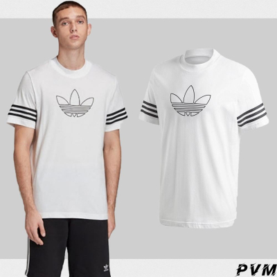 adidas 短袖 Outline Tee 男款 白 短T 三線 三葉草 愛迪達 FM3894