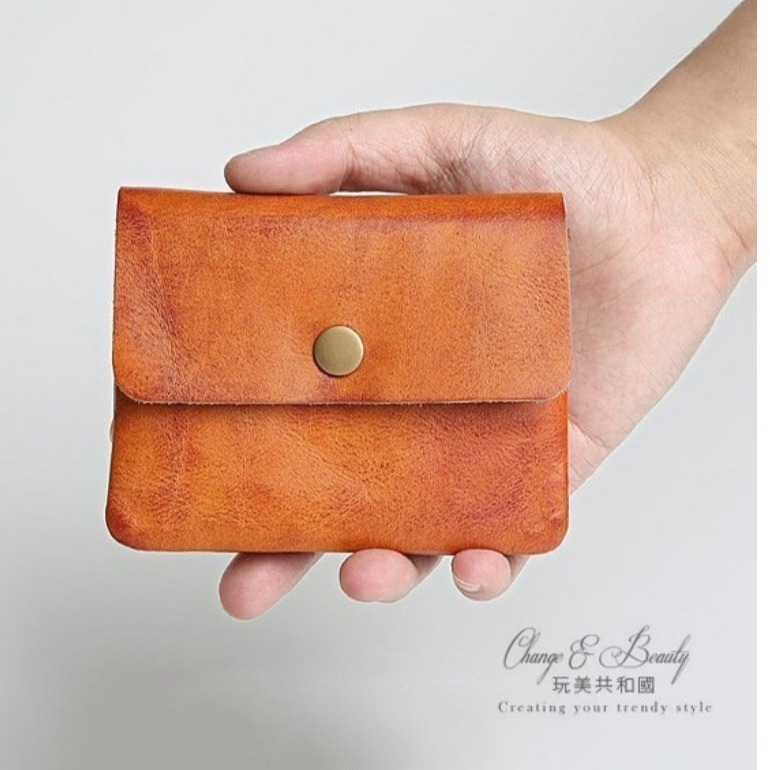(限時199免運)現貨👍簡約復古頭層牛皮零錢包-真皮風植鞣皮多功能短夾收納包 <玩美共和國>