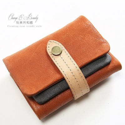 (限時199免運)現貨👍熱銷文創撞色中性男女三折手工頭層牛皮真皮植鞣皮短夾<玩美共和國>