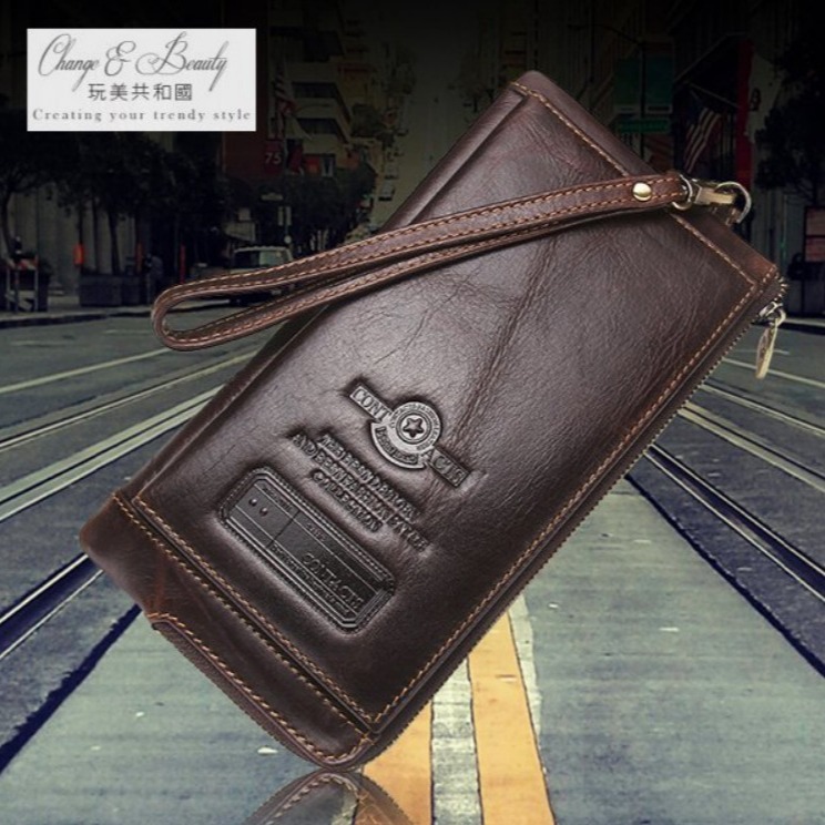 (限時199免運)現貨👍熱賣超薄大容量防RFID男真皮長夾皮夾手機包(附手腕帶)<玩美共和國>