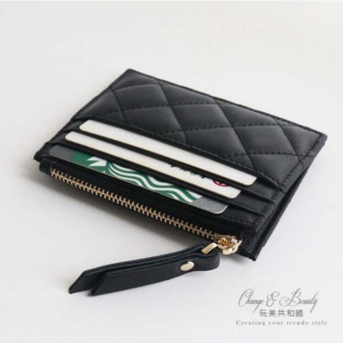 (限時199免運)現貨👍超熱賣超薄菱格真皮羊皮女卡包零錢包<玩美共和國>