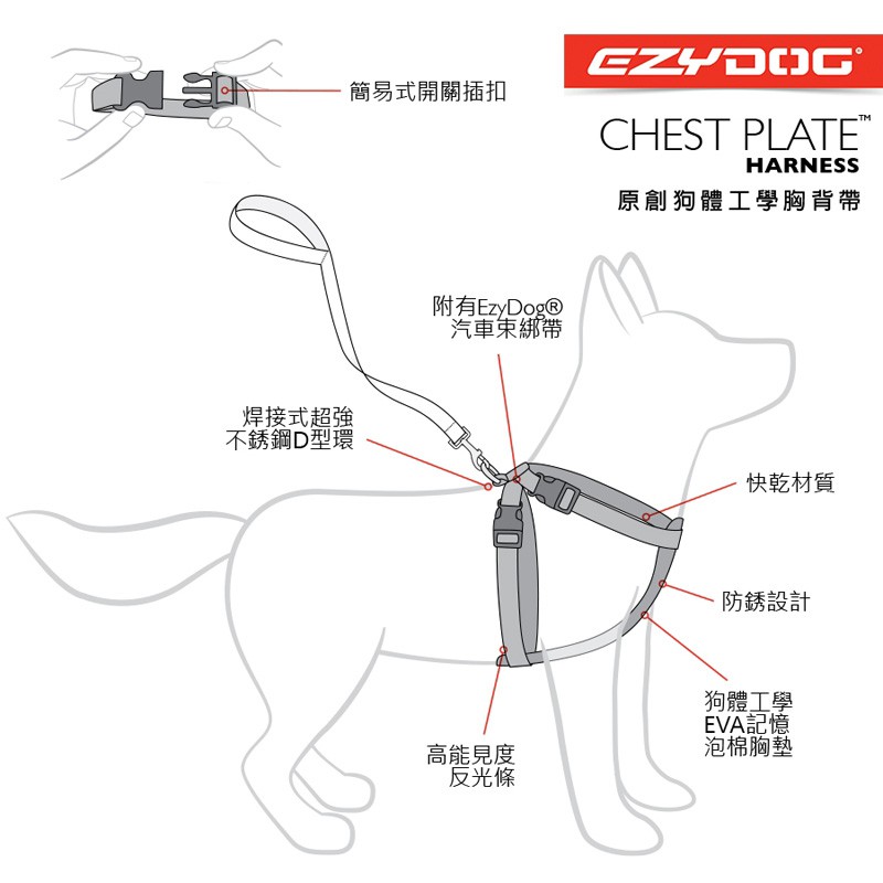 澳洲EzyDog 狗體工學胸背帶|暴衝狗專用|貓咪不掙脫 幼犬/貓咪皆可用
