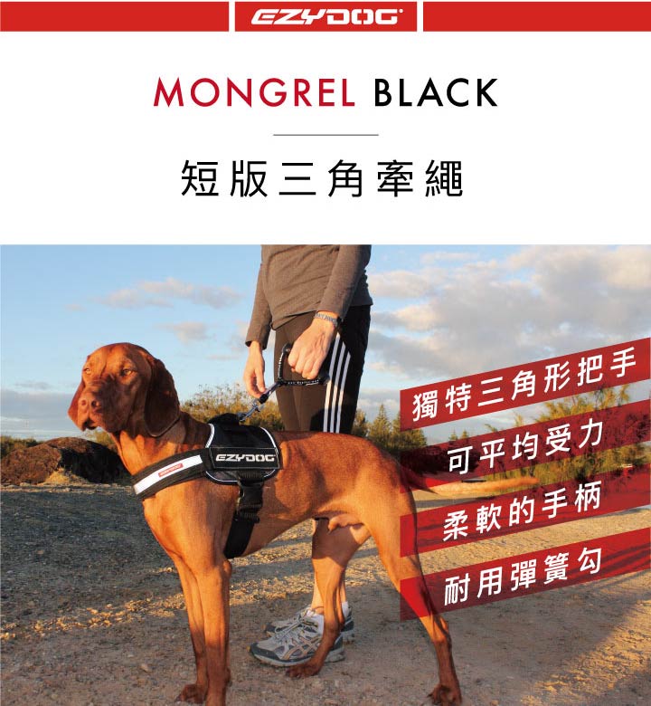 短版三角牽繩 Mongrel-Black 給您最貼近和舒適的控制力主要特性:• 獨特的三角形把手設計,讓把手可平均受力。柔軟的手柄握處給您最大化的舒適度。