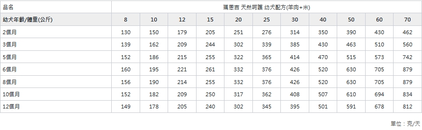 請依照包裝圖表幼犬體重、年齡與運動量進行餵食,建議分3餐食用,確保提供新鮮乾淨的水。如有特別需要可諮詢獸醫師調整用量。