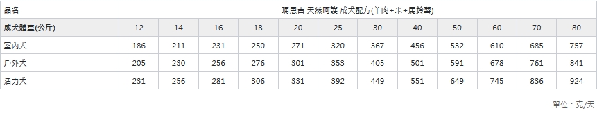 請依照包裝圖表成犬體重、年齡與運動量進行餵食,建議分2餐食用,確保提供新鮮乾淨的水,如有特別需要可諮詢獸醫師調整用量。