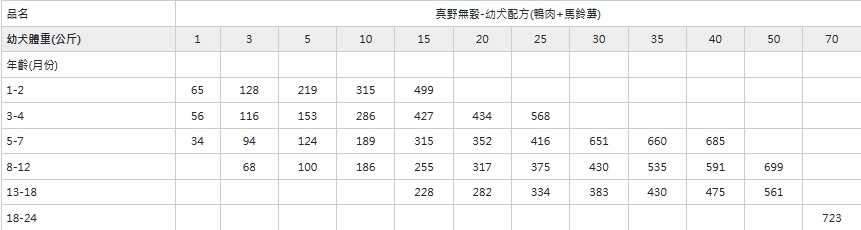 每日餵食量請見餵食建議表,可分為三餐 。飼主請依據寵物活動量與體型調整餵食量。更換新食物的轉換過渡期至少1週,餵食過程請隨時提供新鮮與乾淨的水。
