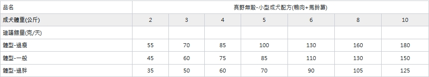 建議餵量: