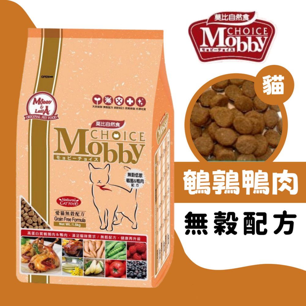 莫比 Mobby 莫比貓飼料 無穀飼料 鴨肉+鵪鶉 無穀 貓飼料 成貓飼料 貓糧 1.5kg 6.5kg