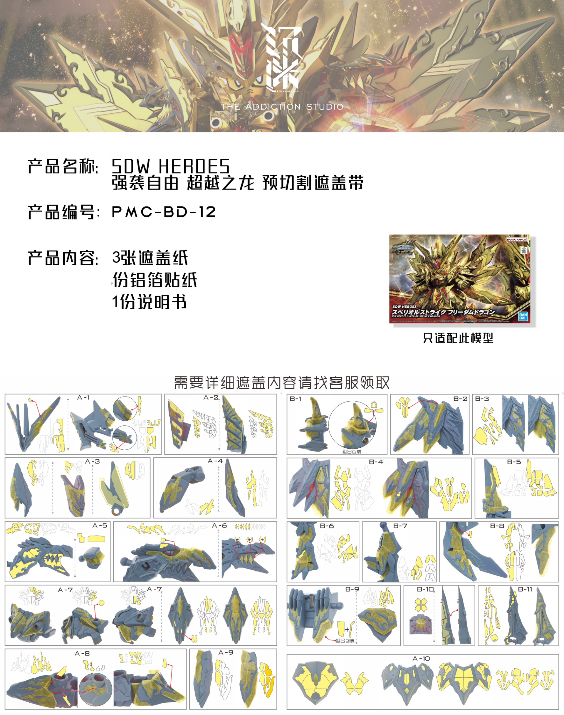 【模玩】TAS沉迷者 萬代SDW 攻擊自由超越之龍 預裁切遮蓋帶
