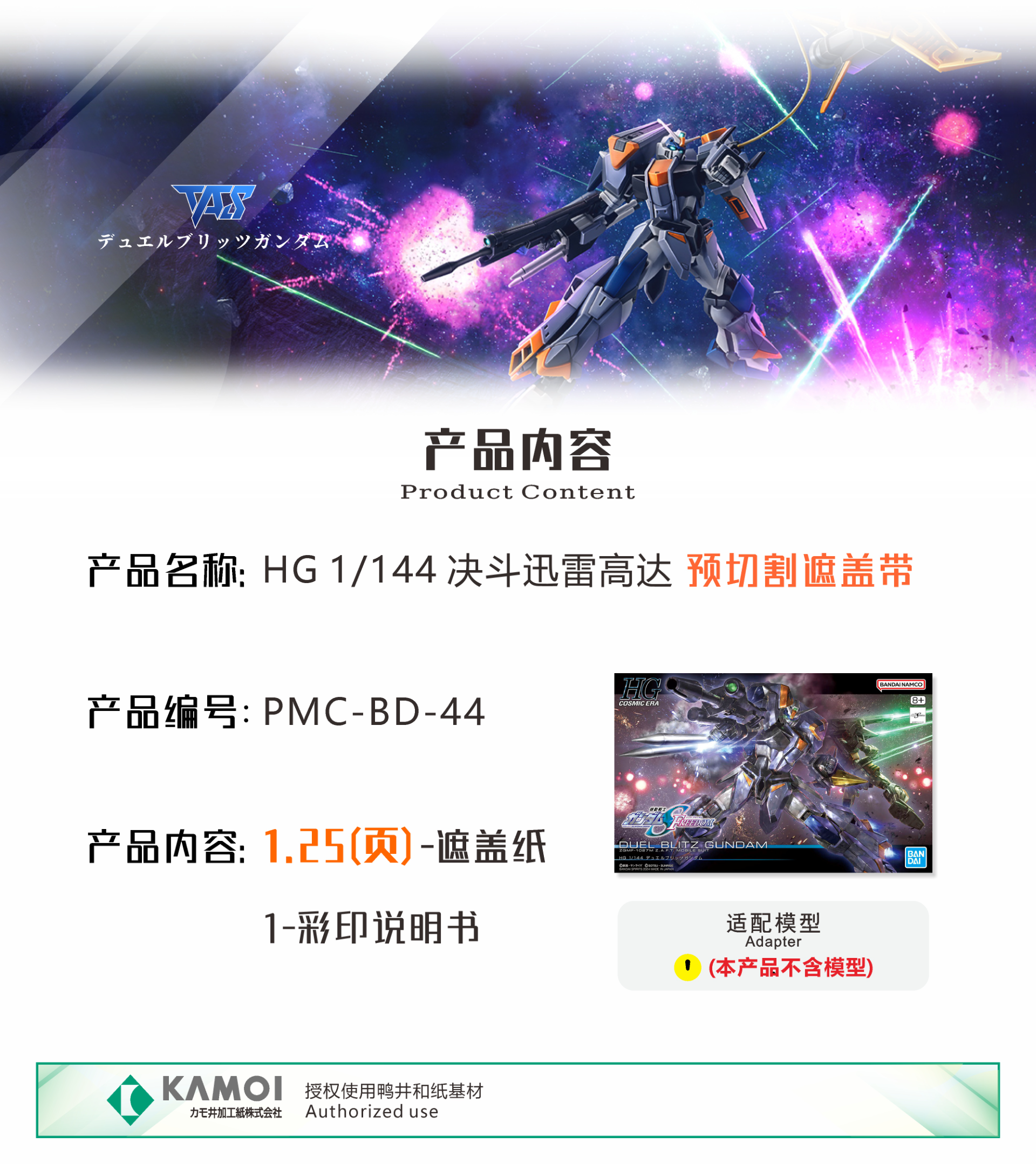 【模玩】TAS沉迷者 萬代HG 決鬥電擊鋼彈 預裁切遮蓋帶