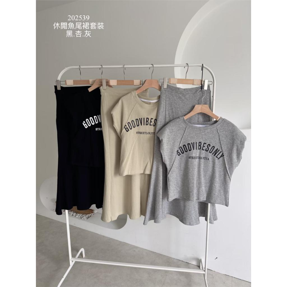季末現貨出清 韓版字母上衣+開岔魚尾長裙 套裝 兩件套