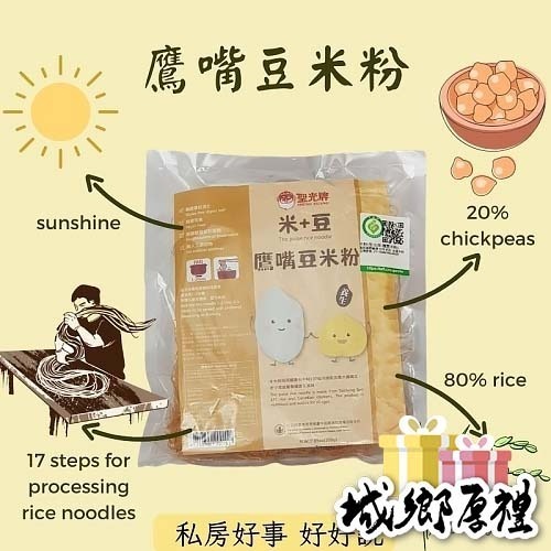 使用蒸炊工法製造的新竹細米粉,嚴選台灣優質在來米及薑黃粉製成