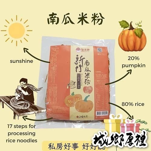 產品特性 :採用優質在來米和天然蔬果雜糧粉為原料,無任何添加劑,呈細絲狀,風乾前已「蒸炊全熟」,所以「快煮易熟」。