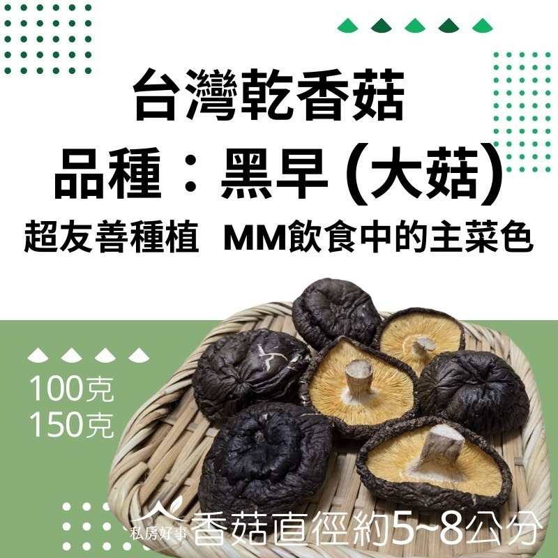為方便您送理自用兩相宜,私房好事選擇"大型尺寸的香菇",香菇 直徑約為5~8公分,大到開心,口感Q嫩彈牙,送禮自用皆適宜。