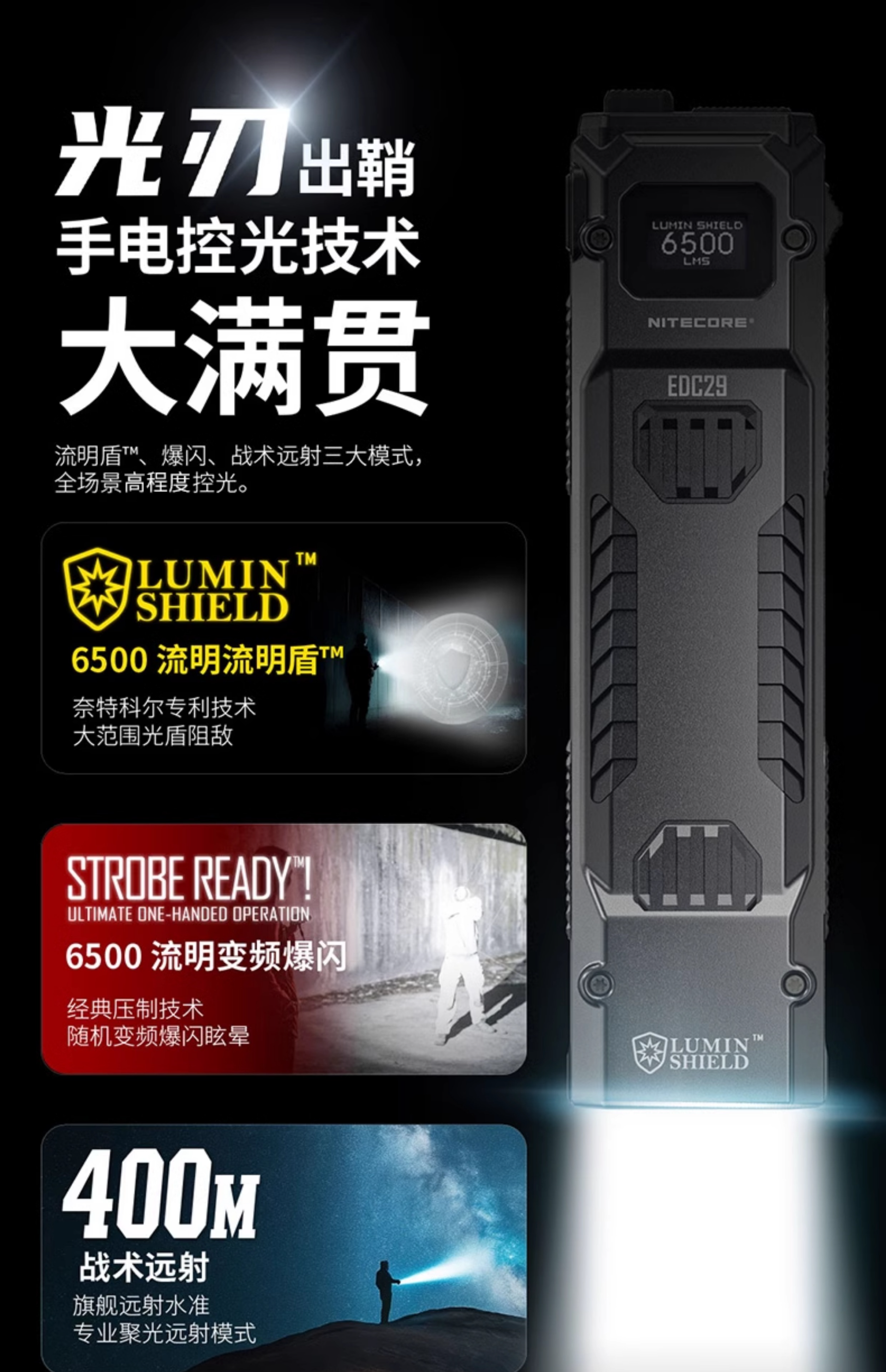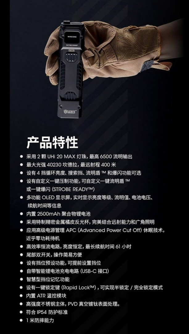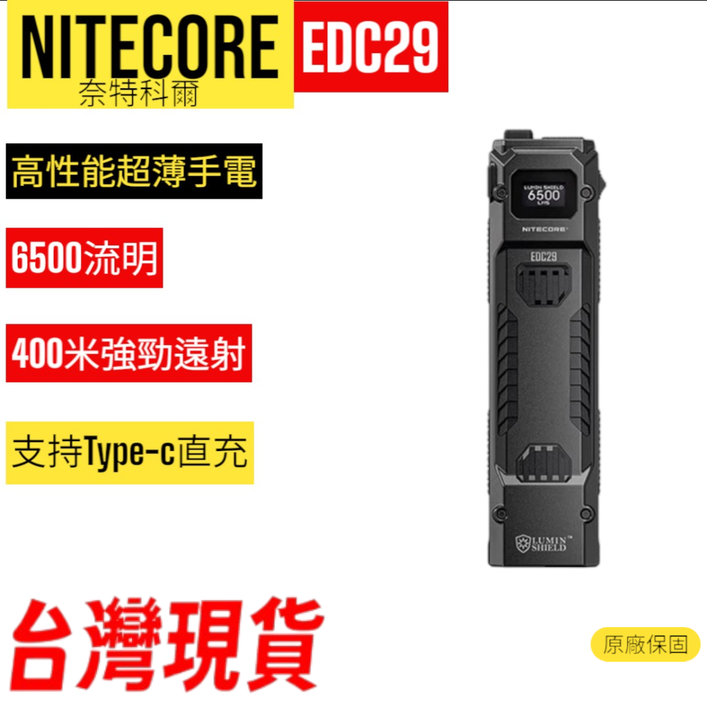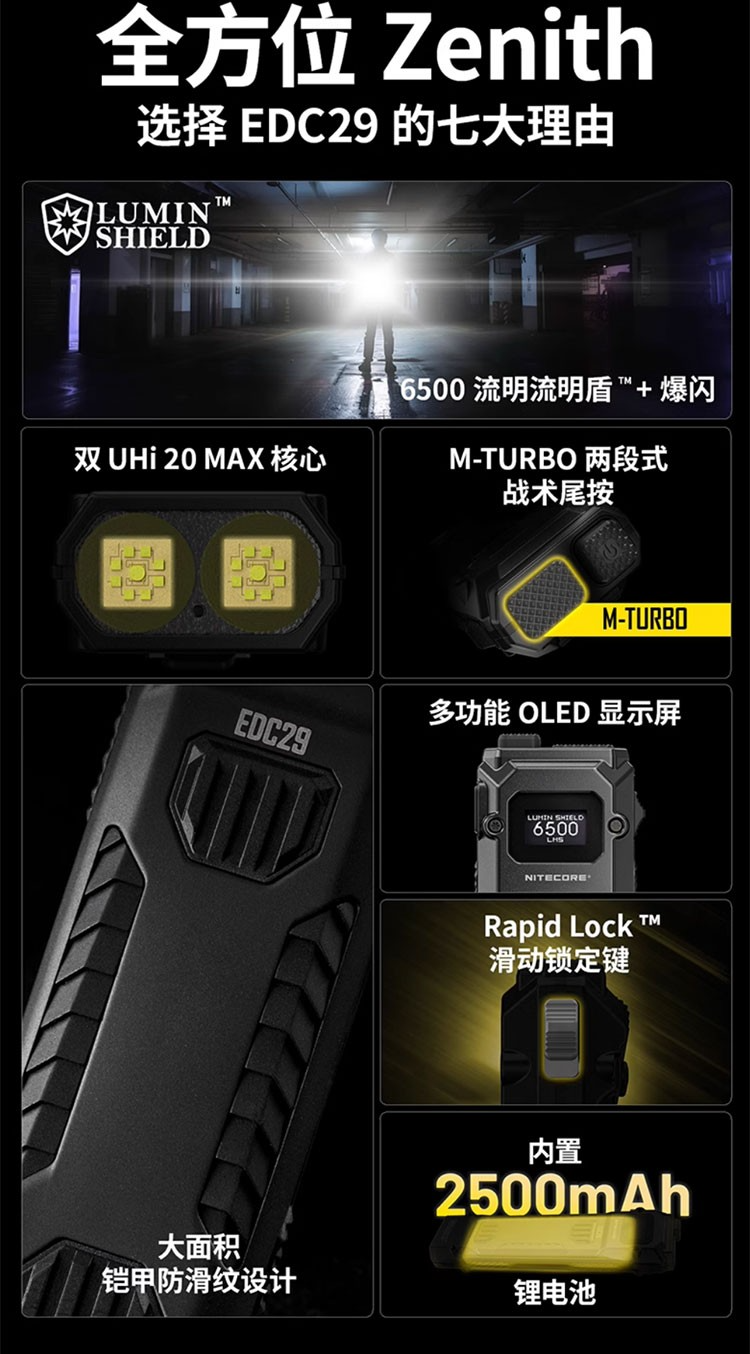NITECORE EDC29 高性能超薄EDC手電筒 6500流明 400米 OLED 流明盾 爆閃