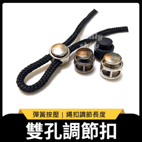 雙孔調節扣 豬鼻子 豬鼻扣 彈簧扣 扣具 塑料 繩索扣 線繩 束口擋繩 繩尾扣 鬆緊繩 鞋扣 止滑扣 戰術 傘繩 五金