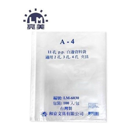 亮美 A4 11孔內頁 文件袋 萬用內頁 白邊資料袋 (100入) [台灣製] 厚度0.04 / 0.08 mm 可選