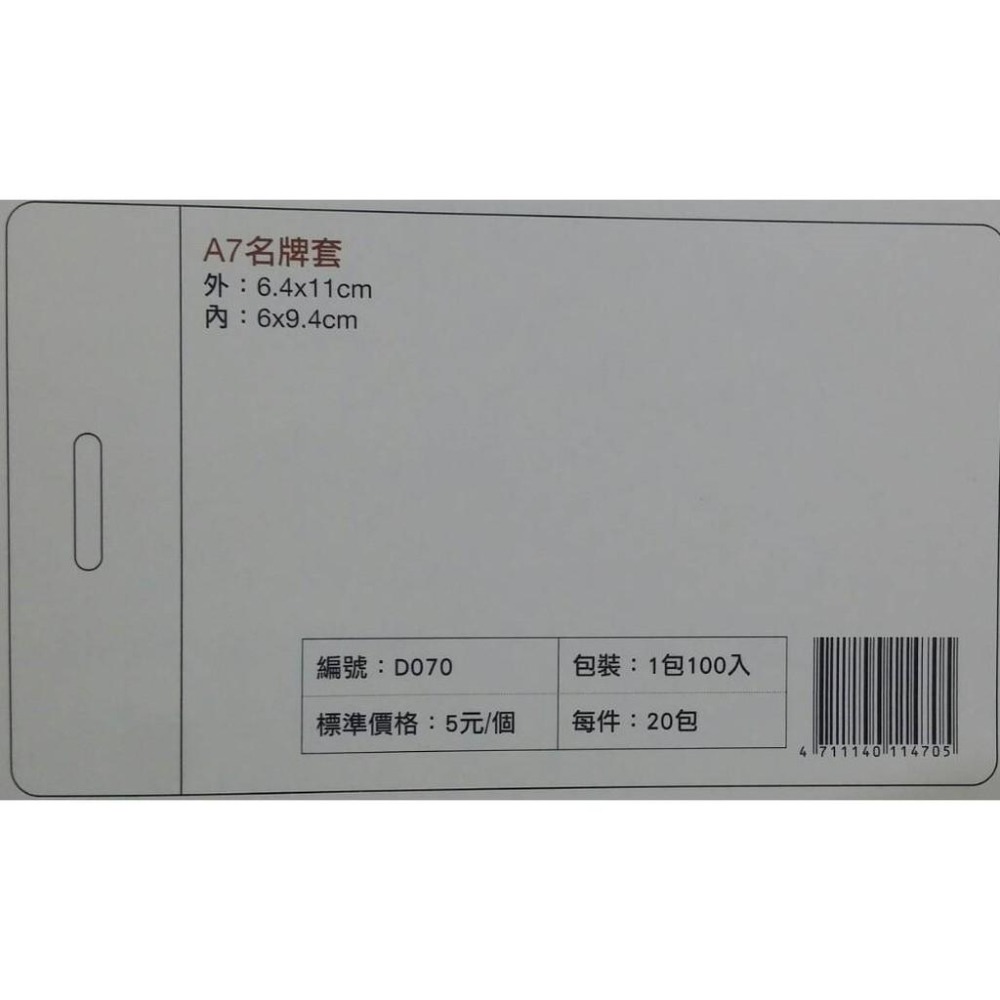 珍奇 A7名牌套 識別證套 D070 (5入)