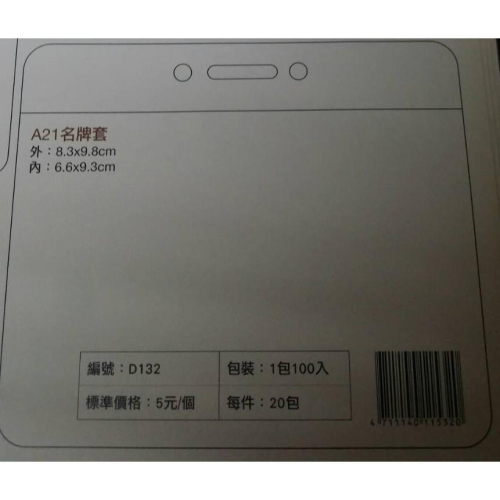 珍奇 D132 A21名牌套 識別證套 D132 (5入)