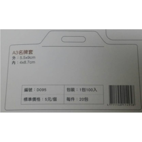 珍奇 A3名牌套 識別證套 D095 (5入)