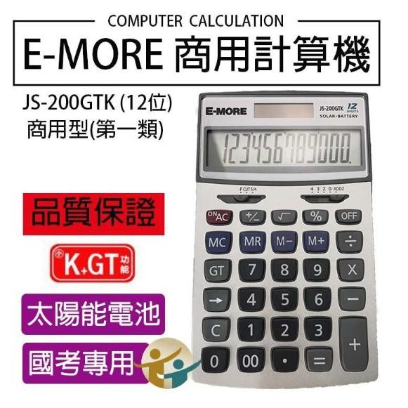 E-MORE JS-200GTK 國家考試12位元計算機 商用型第一類 K+GT功能 12位數 K值功能桌上型計算機