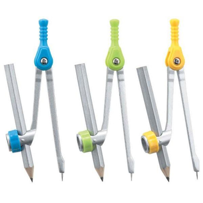 產品名稱: 便利型圓規 產品編號: 最大畫圓半徑 使用筆芯 D-200: 14 cm【直徑:28 cm】 2.0mm筆芯 D-300: 13.5cm【 直徑27cm 】 一般鉛筆(附削筆器) D-412: 15 cm【直徑:30 cm】 0.5mm自動鉛筆筆芯 D-500: 14 cm【直徑:28 cm】 0.5mm自動鉛筆筆芯 顏  色: 藍色 綠色 黃色 100%全程台灣生產製造 ˙圓規盒底附有快速半徑測量刻度,每一最小刻度為0.5公分,不必用尺即可快速量測需要的半徑尺寸,畫出需要的圓,簡單又便利。 ˙圓規中心線自動校準功能,打開圓規腳圓規自動回到中心位置,劃圓準確又便利。 ˙背面說明書可書寫小朋友姓名,方便小朋友收納保管,不易遺失。