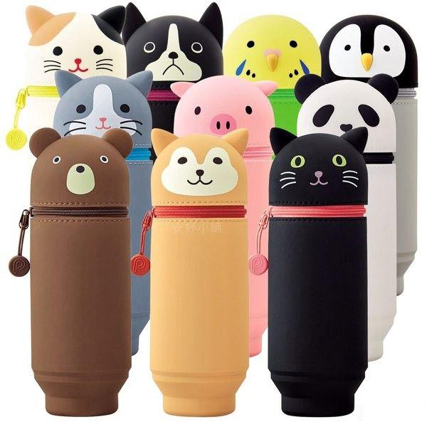 日本 LIHIT LAB. A-7714 (大) / A-7712 (小) 動物造型直立式伸縮鉛筆盒 伸縮筆筒 筆袋