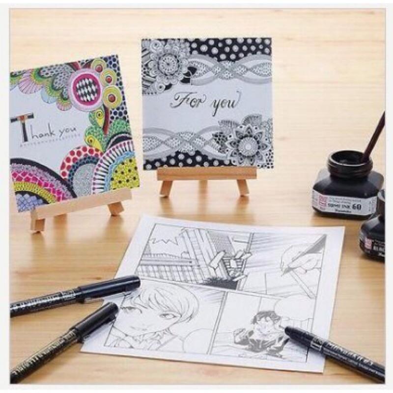 特點: 1 使用顏料墨水耐水性佳 / 2 耐光性佳 - 筆尖強韌,不易分岔 - 快乾防水,適合用於描框或塗滿 - 經AP認真,環保安全無毒,可放心使用