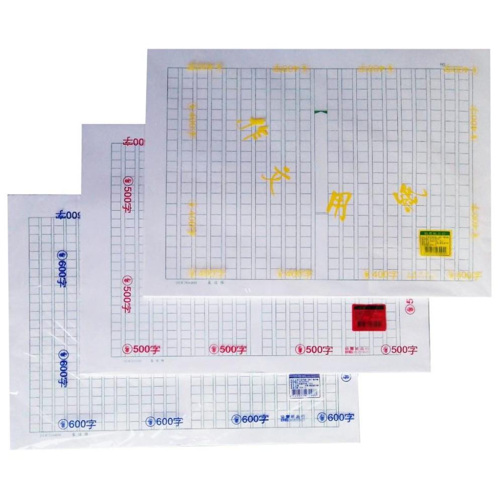包裝 : 90張/包 材質:模造紙 磅數:45磅 格數:600字/格(24行*25格) 格數:500字/格(20行*25格) 格數:400字/格(20行*20格) 400字稿紙格子間距與大小:每格寬1.1CM×高1.1CM;每行間距0.4CM 500字稿紙格子間距與大小:每格寬1CM×高0.9CM;每行間距0.4CM 600字稿紙格子間距與大小:每格寬1CM×高0.9CM;每行間距0.3CM 尺寸 : 8K(約35*26公分)手工測量略有誤差,介意者請勿下單。