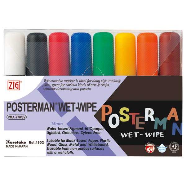 吳竹Kuretake PMA-770/8V 可擦拭廣告筆(平頭) 8色一組 15mm