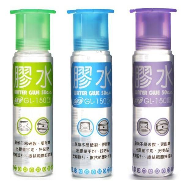 SKB~GL-150刷頭膠水(50cc) 顏色:紫、藍、綠(外瓶色) 特色:特殊毛刷設計,輕刷不沾手,耐用不易損壞