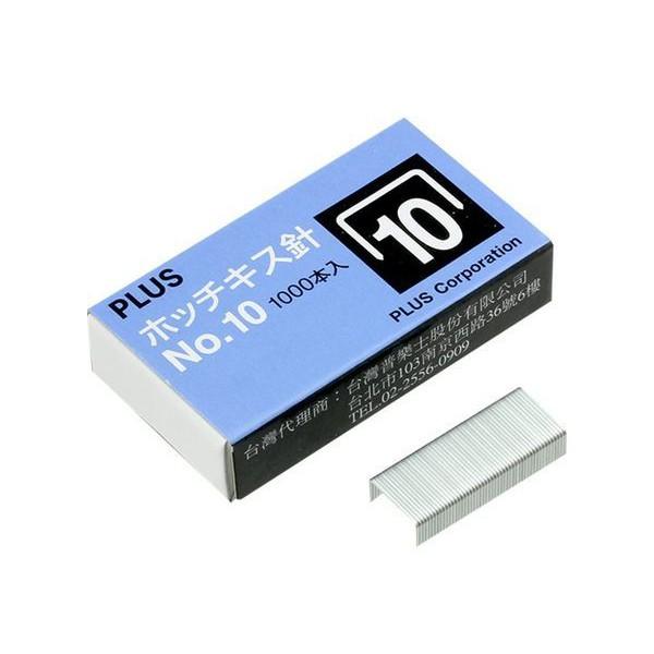 PLUS 普樂士 10號釘書針 NO-10號訂書針/一小盒1000pcs * 一小盒1000pcs * 各廠牌10號機都適用 * 可裝釘約20張數 * 材質 鍍鋅鐵線 一大盒有20小盒 一箱900盒