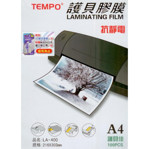 節奏牌TEMPO LA-400 A4護貝膠膜 (100張/盒) 厚度80mic