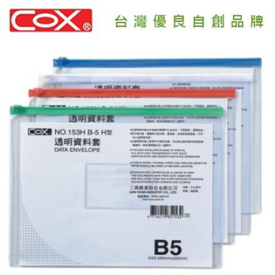 COX三燕 NO.153H/153V B5 橫式 直式 透明資料套 透明資料袋 收納袋 文件套 拉鍊袋 夾鍊袋 資料夾