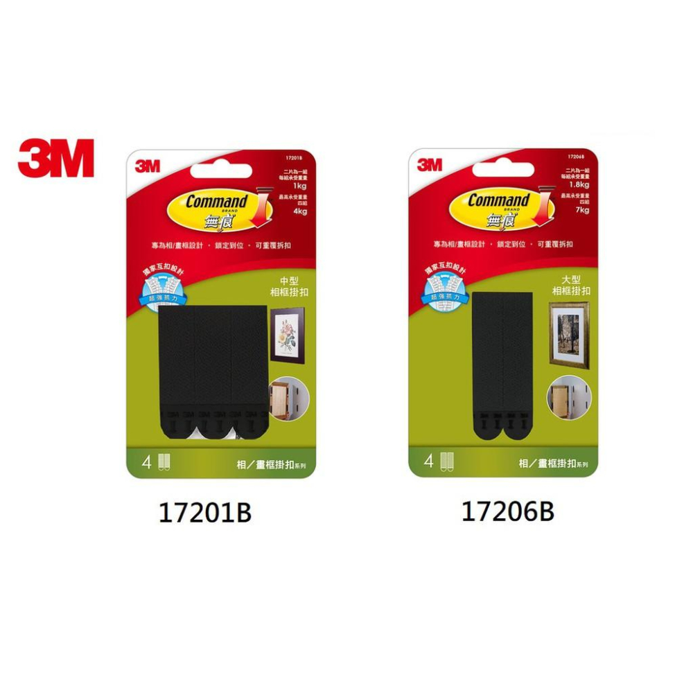 3M 17201B 中型無痕黑色畫框掛扣(4入) 掛鉤 / 17206B 大型無痕黑色畫框掛鉤(4入)