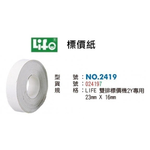 徠福LIFE NO.2419 標價紙 (適用LIFE雙排2Y標價機)