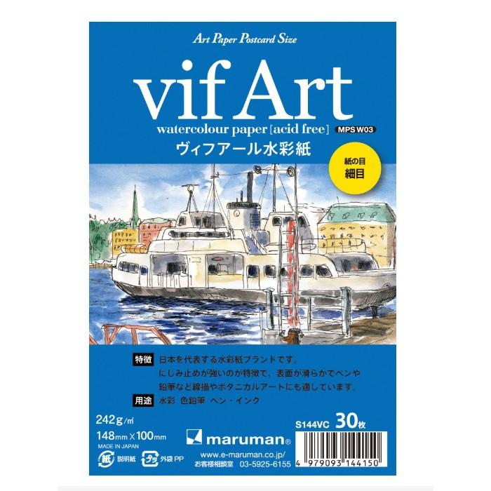 日本 Maruman S144VC vif Art 細目水彩 明信片 水彩紙 30張 148*100mm (藍色)