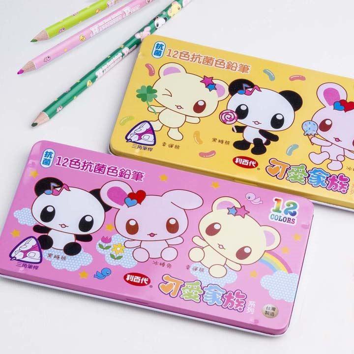 利百代 Liberty 可愛家族抗菌三角色鉛筆 12色 鐵盒裝 CC-073